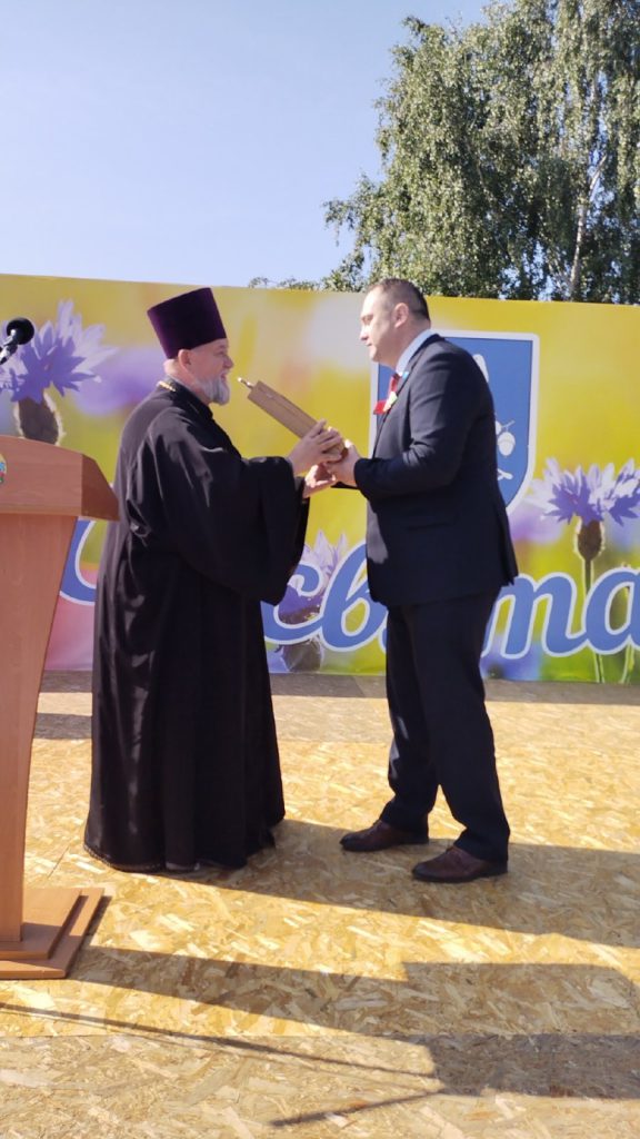 В ответном слове отец Геннадий преподнес в подарок председателю райисполкома А.В. Дорошенко икону Пресвятой Богородицы и пожелал всем мира и доброй жизни под покровом Божиим и Божией Матери.
