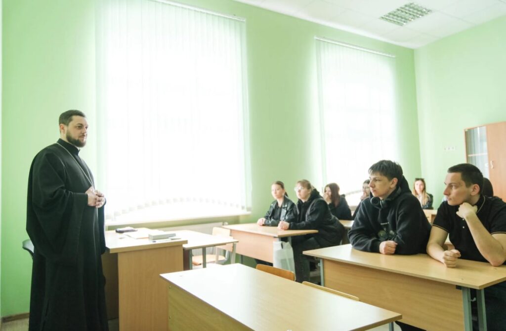Клирик храма Сретения Господня в г. Дрогичине иерей Александр Полоско побеседовал с учащимися Брестского государственного колледжа приборостроения на тему «Нравственный выбор человека (свобода, совесть, ответственность)».