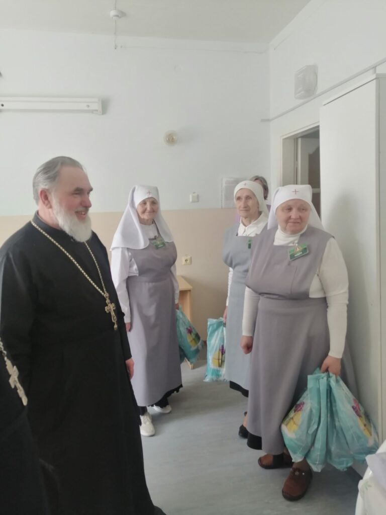 23 апреля 2025 года благочинный Дрогичинского округа, настоятель прихода храма прп. Евфросинии Полоцкой в г. Дрогичине протоиерей Иоанн Пинчук с сёстрами сестричества милосердия, действующего при храме, вместе с иереем Леонидом Коледой, настоятелем прихода храма Пресвятой Богородицы в агрогородке Радостово, посетили Радостовскую сельскую больницу, отделение социальных коек.