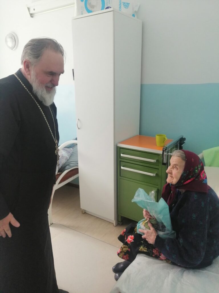23 апреля 2025 года благочинный Дрогичинского округа, настоятель прихода храма прп. Евфросинии Полоцкой в г. Дрогичине протоиерей Иоанн Пинчук с сёстрами сестричества милосердия, действующего при храме, вместе с иереем Леонидом Коледой, настоятелем прихода храма Пресвятой Богородицы в агрогородке Радостово, посетили Радостовскую сельскую больницу, отделение социальных коек.