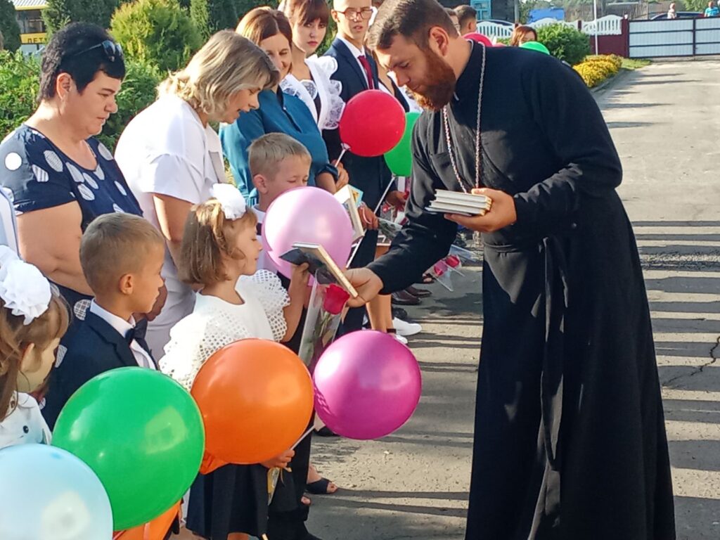 2 сентября 2024 г., по приглашению администрации ГУО «Радостовская средняя школа», настоятель храма Покрова Пресвятой Богородицы в аг. Радостово иерей Леонид Коледа принял участие в торжественной линейке.