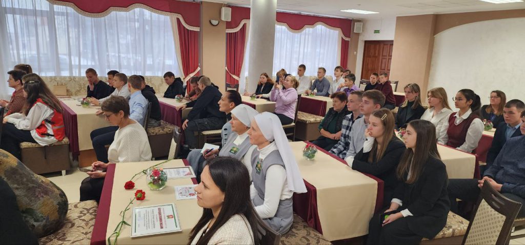 В зале ГДК торжественное мероприятие собрало в единую, дружную волонтерскую семью добровольцев волонтерского движения из районной организации Красного Креста, Белорусского республиканского союза молодежи, представительниц серебряного возраста Территориального центра социального обслуживания населения и сестер милосердия прихода храма преподобной Евфросинии Полоцкой в городе Дрогичине.