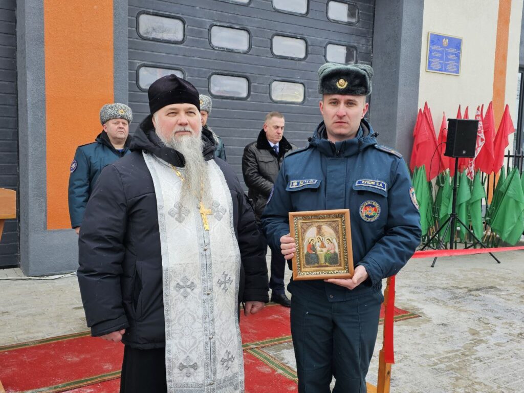 В торжественном мероприятии принял участие ответственный за взаимодействие с РОЧС, настоятель храма Воздвижения Креста Господня в агрогородке Головчицы иерей Александр Бондарев. Священник обратился с поздравительным и напутственным словом к спасателям-огнеборцам, пожелал им помощи Божией в нелегком и благородном служении, спокойных трудовых будней, самообладания, выносливости и крепкого здоровья.