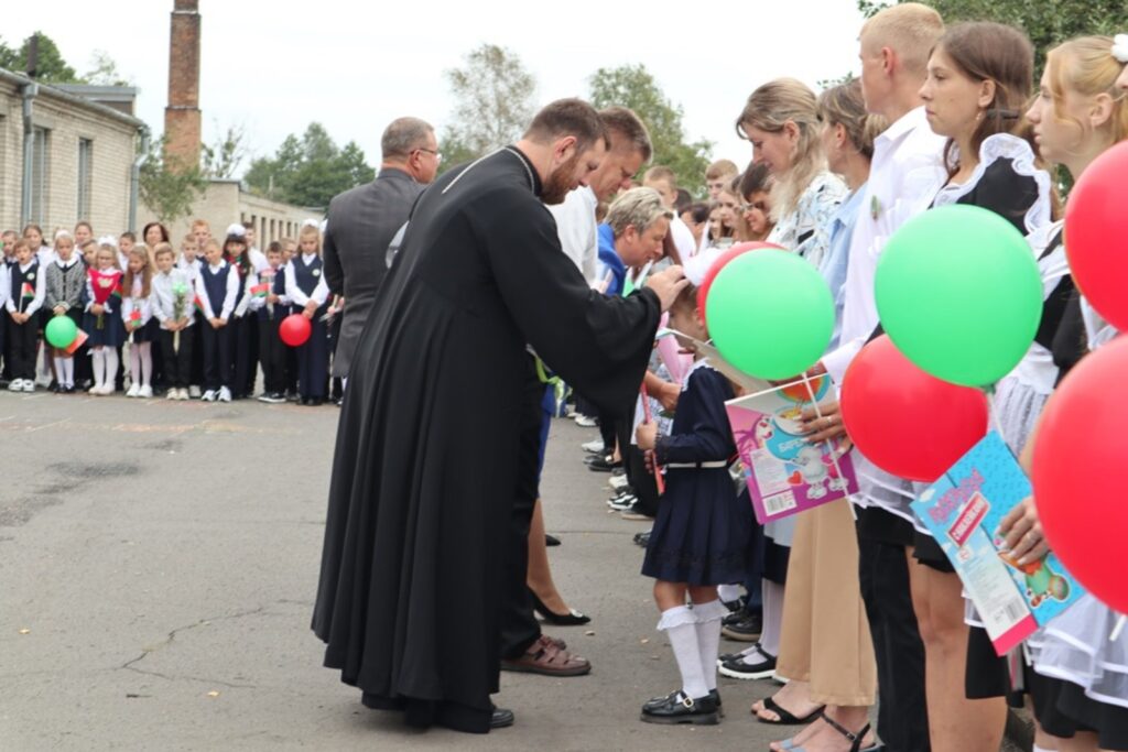 1 сентября 2025 года настоятель храма Покрова Пресвятой Богородицы в аг. Радостово иерей Леонид Коледа был приглашён на торжественную линейку по случаю начала учебного года в государственном учреждении образования «Радостовская средняя школа».