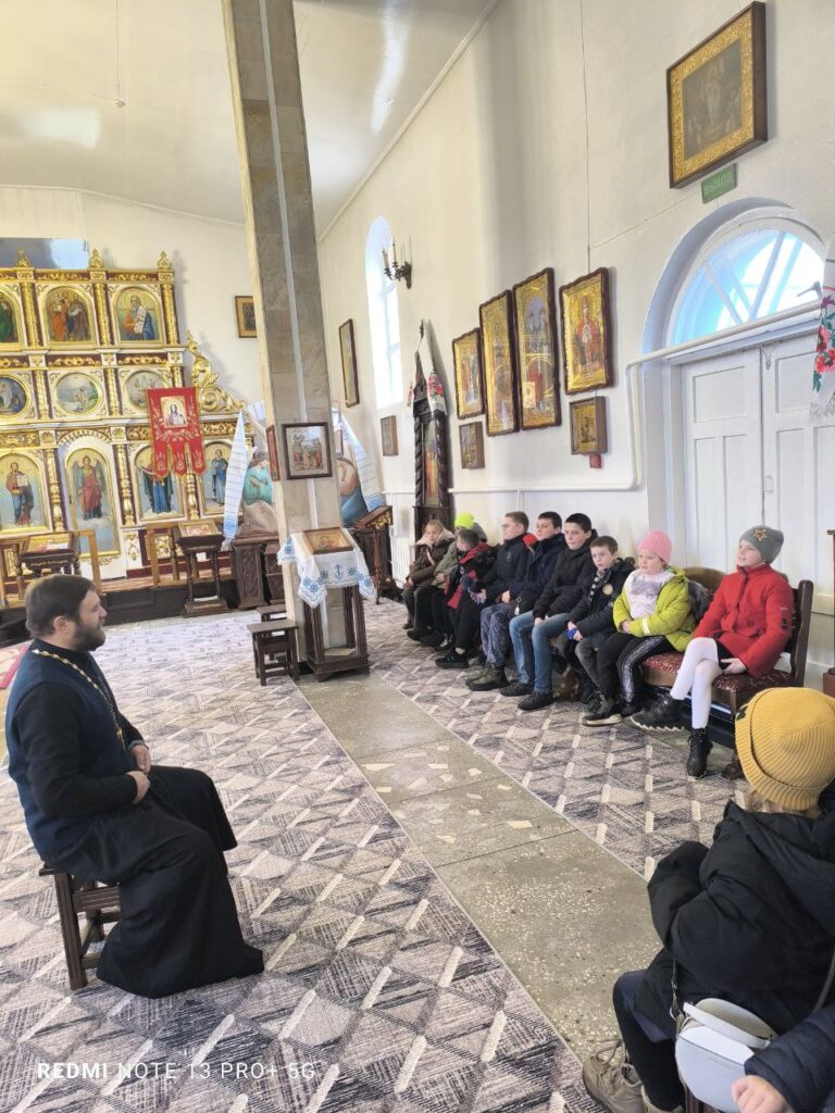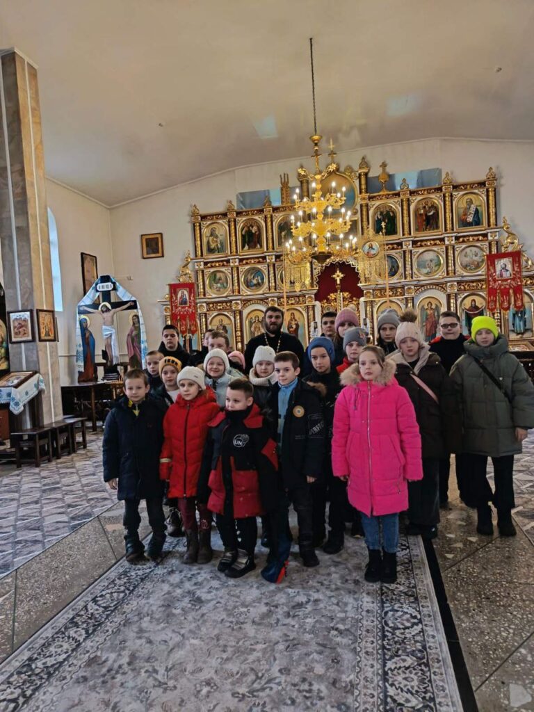 27 декабря 2025 г. храм Покрова Пресвятой Богородицы в аг. Хомск посетили учащиеся 1-7 классов ГУО «Хомская средняя школа». Настоятель прихода иерей Иоанн Барановский рассказал детям о приближающемся светлом празднике — Рождестве Господа Иисуса Христа.