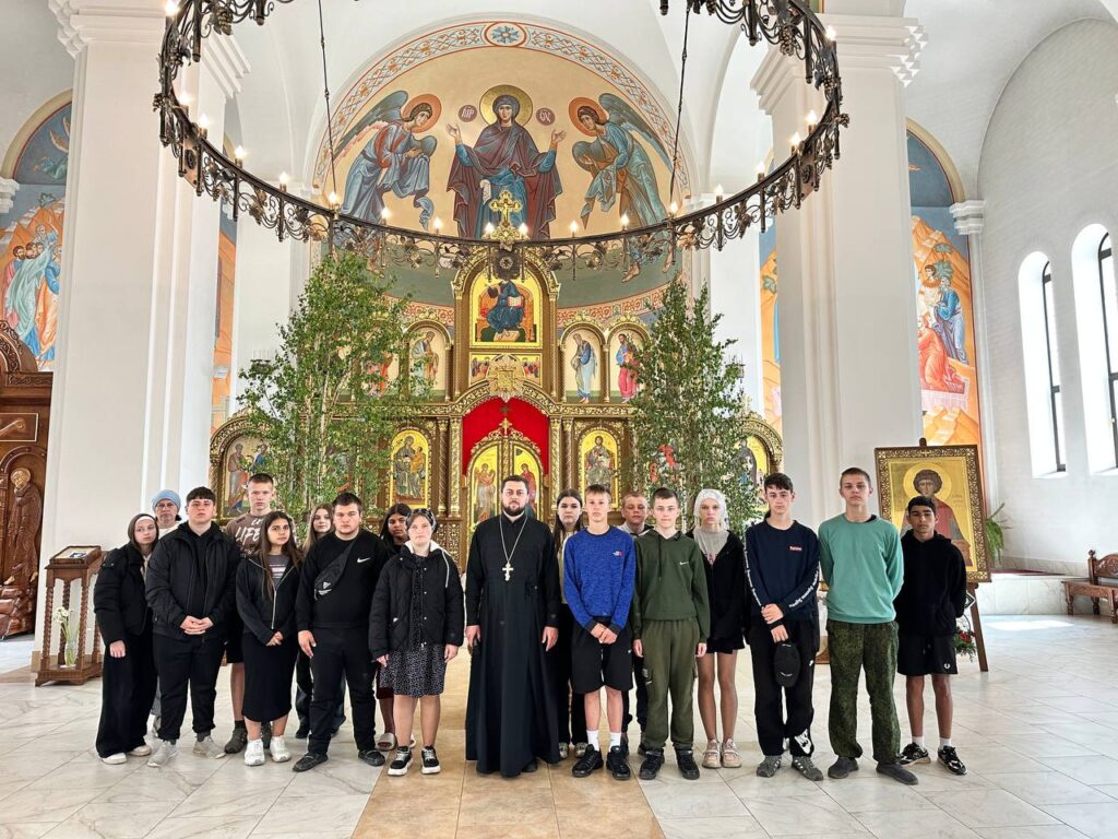 Священнослужитель рассказал ребятам об устройстве храма, его святынях. В ходе экскурсии говорили о необходимости совершения дел веры, чтобы быть подлинными христианами.