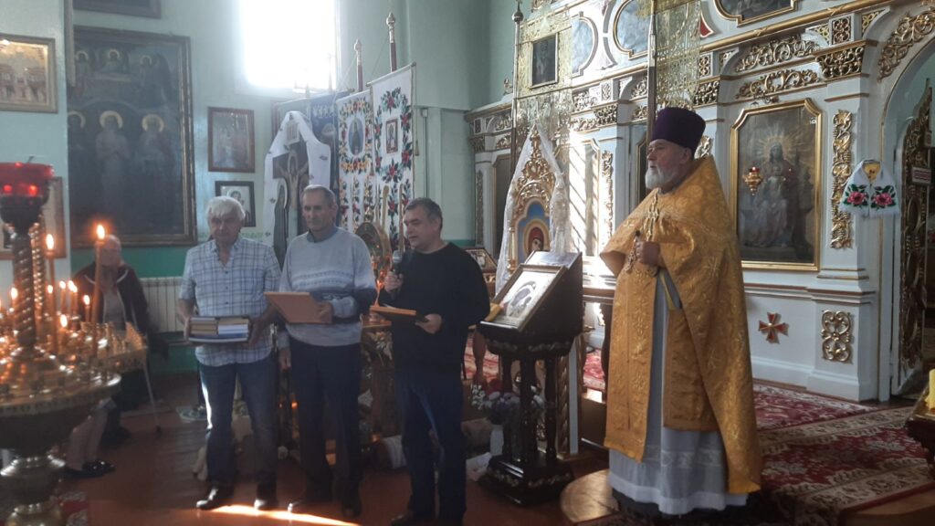 По окончании Божественной Литургии гости из г. Березы преподнесли в дар храму Святой Живоначальной Троицы икону «Собор небесных покровителей Лавр Святой Руси». Уникальность иконы заключается в том, что она является копией иконы, которая побывала в 2017-2018годах на околоземной орбите. Икона находилась в космосе 168 суток, совершив 2688 витков вокруг Землии пролетела более 114 миллионов километров. Икона является символом духовного единства народов Беларуси, России, Украины.
