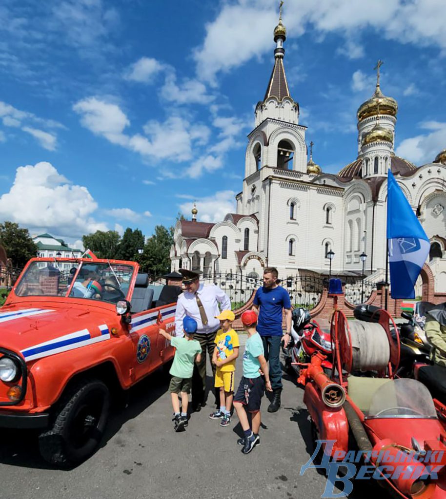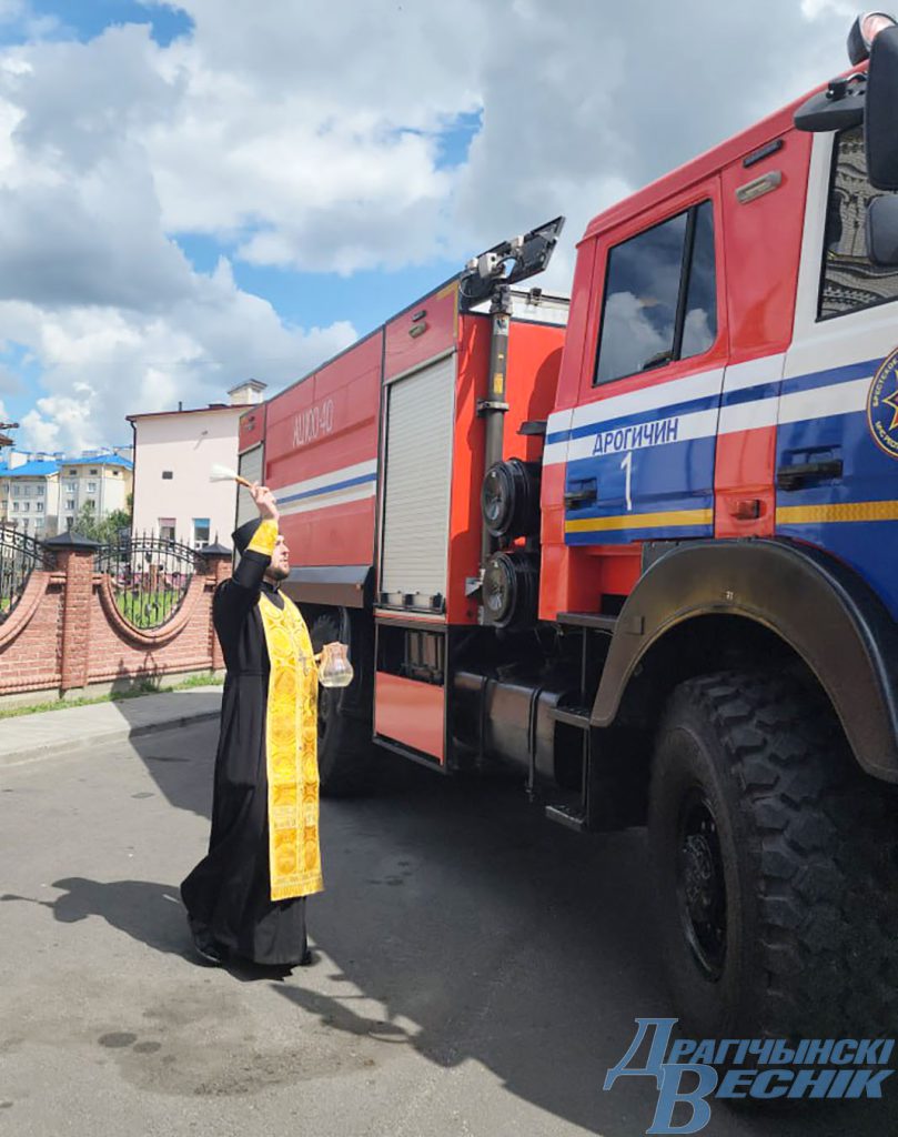 Перед тем как на площадке возле кинотеатра начали работать тематические площадки клирик храма в честь преподобной Евфросинии Полоцкой в городе Дрогичине иерей Димитрий Гречко совершил краткий молебен и прочитал молитвы на благословение пожарной техники, окропив ее и сотрудников РОЧС святой водой. Затем дрогичинские пожарные начали демонстрацию аварийно-спасательной техники, в числе которой была представлена и пожарная техника, выпущенная в 1980-90-е годы, и новые образцы, поступившие на вооружение к нашим спасателям недавно. Современная аварийно-спасательная техника создается на базе МАЗ. От старых образцов отличаются полным приводом и многофункциональностью, а по объему возимых огнетушащих веществ серьезно превосходит образцы старой техники, созданной на базе ЗИЛ.