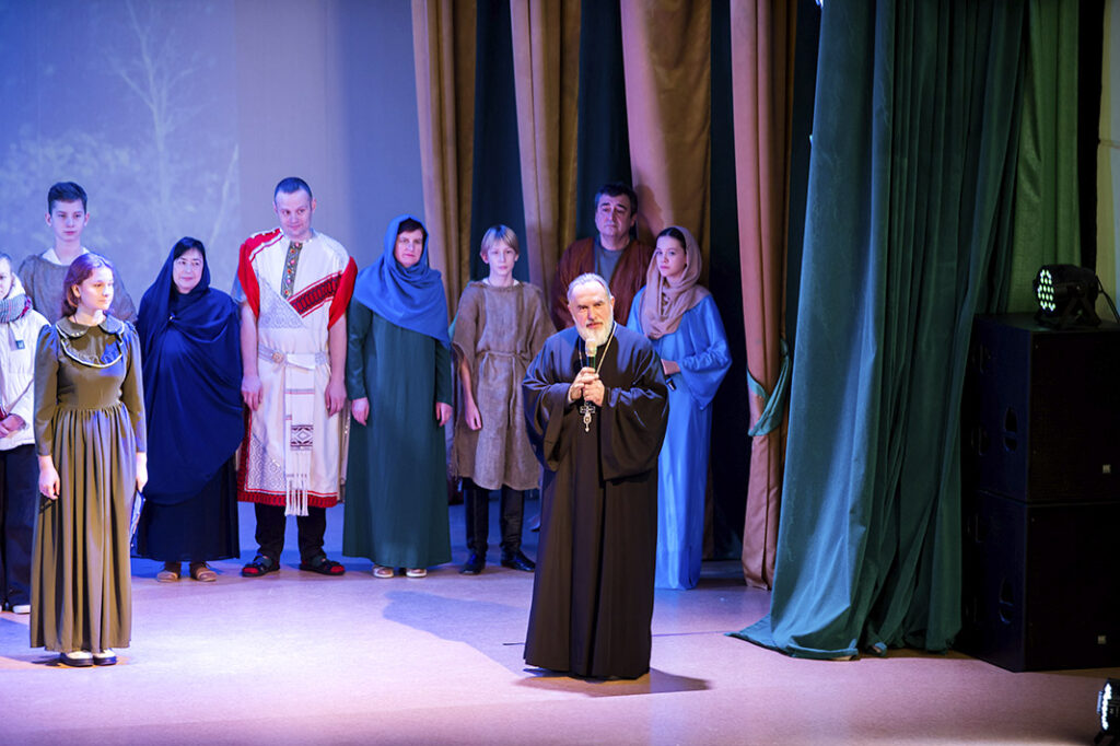 Участники молодежного братства и другие артисты представили мини-пьесу «Случай с ангелом» по мотивам произведения О. Зверлиной. Эта история напомнила о важности веры, любви и милосердия.