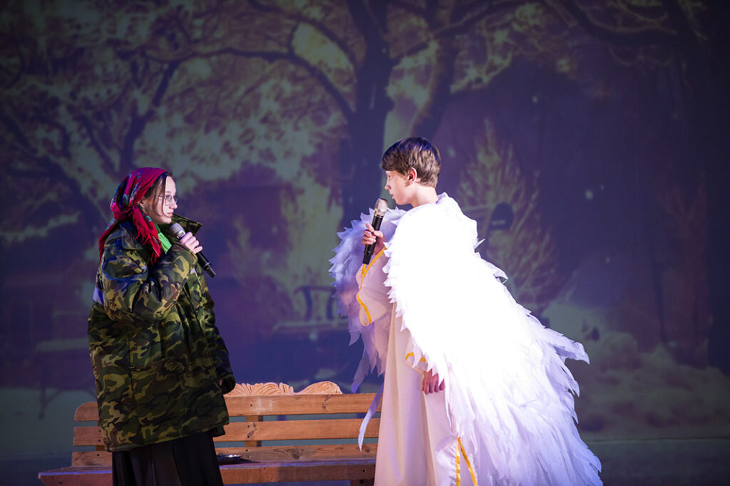 Участники молодежного братства и другие артисты представили мини-пьесу «Случай с ангелом» по мотивам произведения О. Зверлиной. Эта история напомнила о важности веры, любви и милосердия.