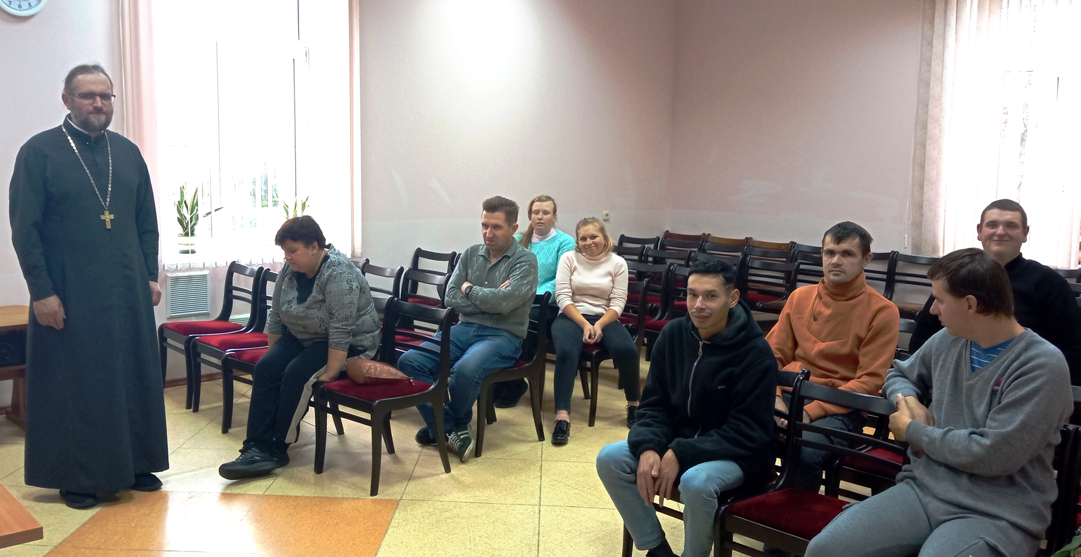 26 октября 2023 г. состоялась встреча граждан, посещающих отделение социальной реабилитации, абилитации инвалидов ГУ «Дрогичинский ТЦСОН» с настоятелем храма Сретения Господня в г. Дрогичине Александром Кучмой.