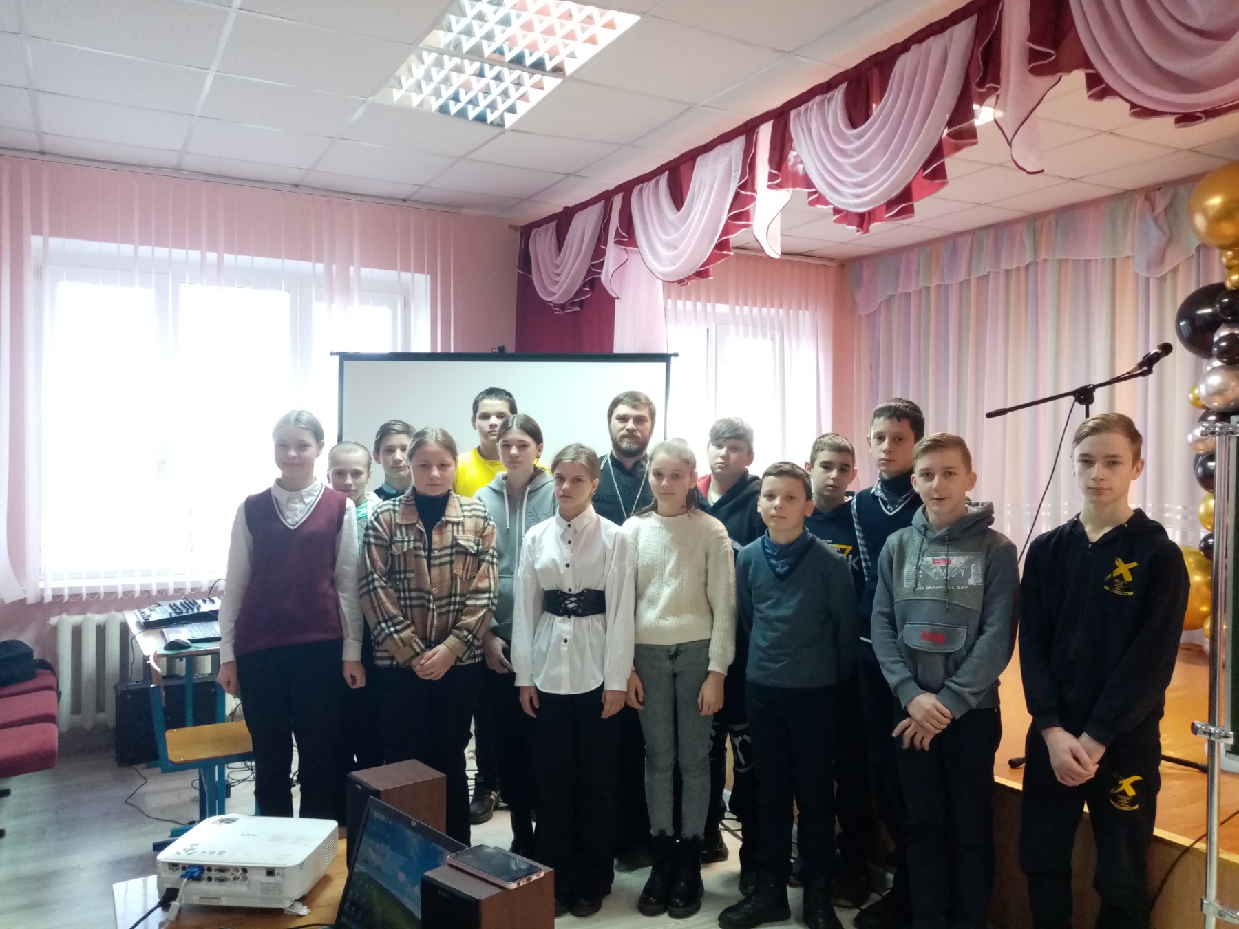 9 февраля 2023 г. состоялась встреча настоятеля храма Покрова Пресвятой Богородицы в аг. Хомске иерея Иоанна Барановского с учениками 7-8 классов ГУО «Хомская средняя школа» на тему «Доброта и милосердие».