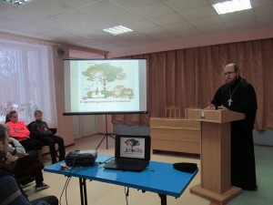 На встрече присутствовали учащиеся 8-11 классов и педагоги школы. Священник рассказал о тесной взаимосвязи души и тела человека. Для того чтобы тело общалось с миром его Господь наделил различными чувствами: зрением, вкусом, осязанием, слухом. Очень часто можно зримо увидеть, чем увлекается человек, чем заполнена его душа по окружающим его предметам. Например: если человек любит музыку слушать, тогда диски и флешка с записью музыки всегда находятся рядом с ним. Если человек является фанатом футбола, тогда маленький футбольный мяч у него висит в машине на зеркале заднего вида, носит майку с изображением футболиста и т.д. Все наши положительные или отрицательные эмоции оказывают влияние на наше здоровье. Святой апостол Павел говорит нам о том, что нужно с ранних лет заботиться о наполнении своего сердца любовью, сострадательностью, добротой, жить по любви Божией.