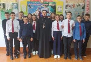 17 сентября 2021 года в ГУО «Средняя школа № 2 г. Дрогичина» состоялась встреча клирика храма Сретения Господня в г. Дрогичине иерея Димитрия Гречко с учащимися 8 «А» класса. Тема встречи: «Духовно-нравственные ценности и роль Православной Церкви в формировании белорусской государственности». Во второй части беседы священник ответил на интересующие детей вопросы.