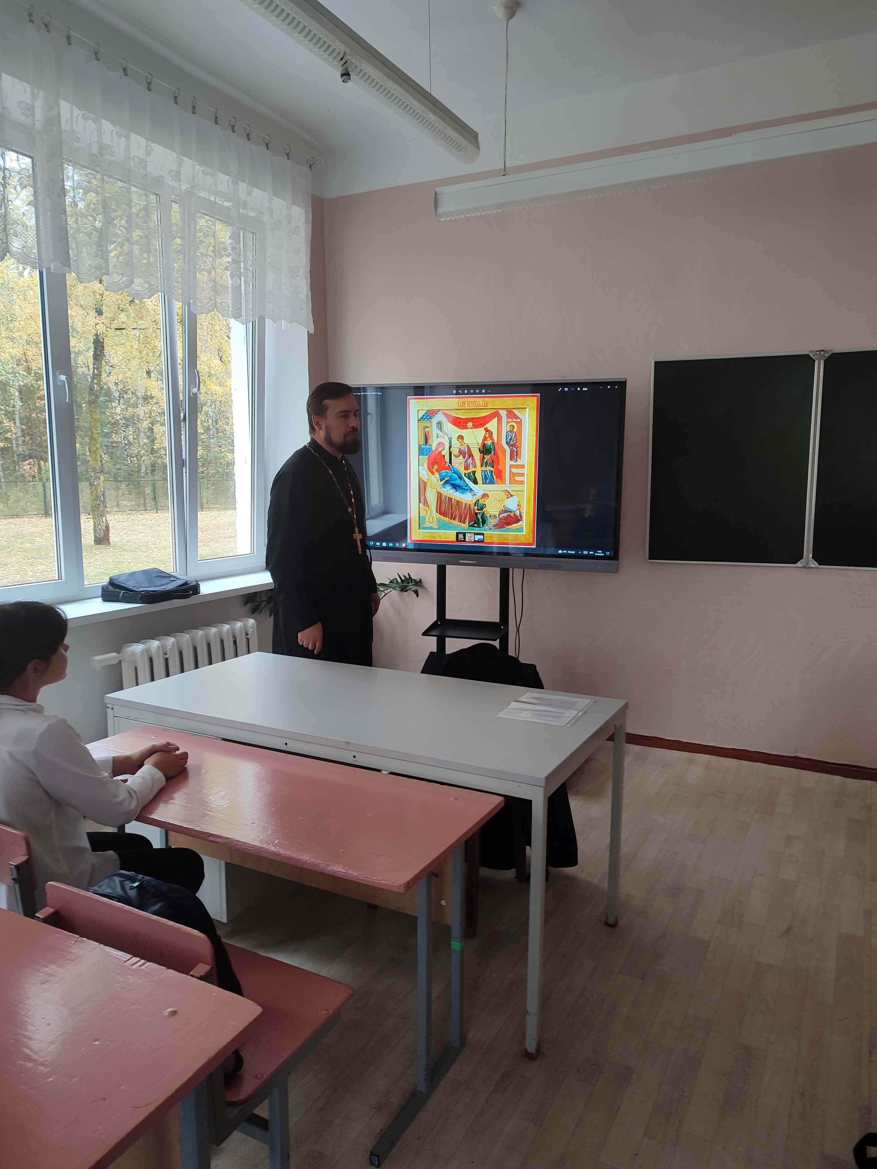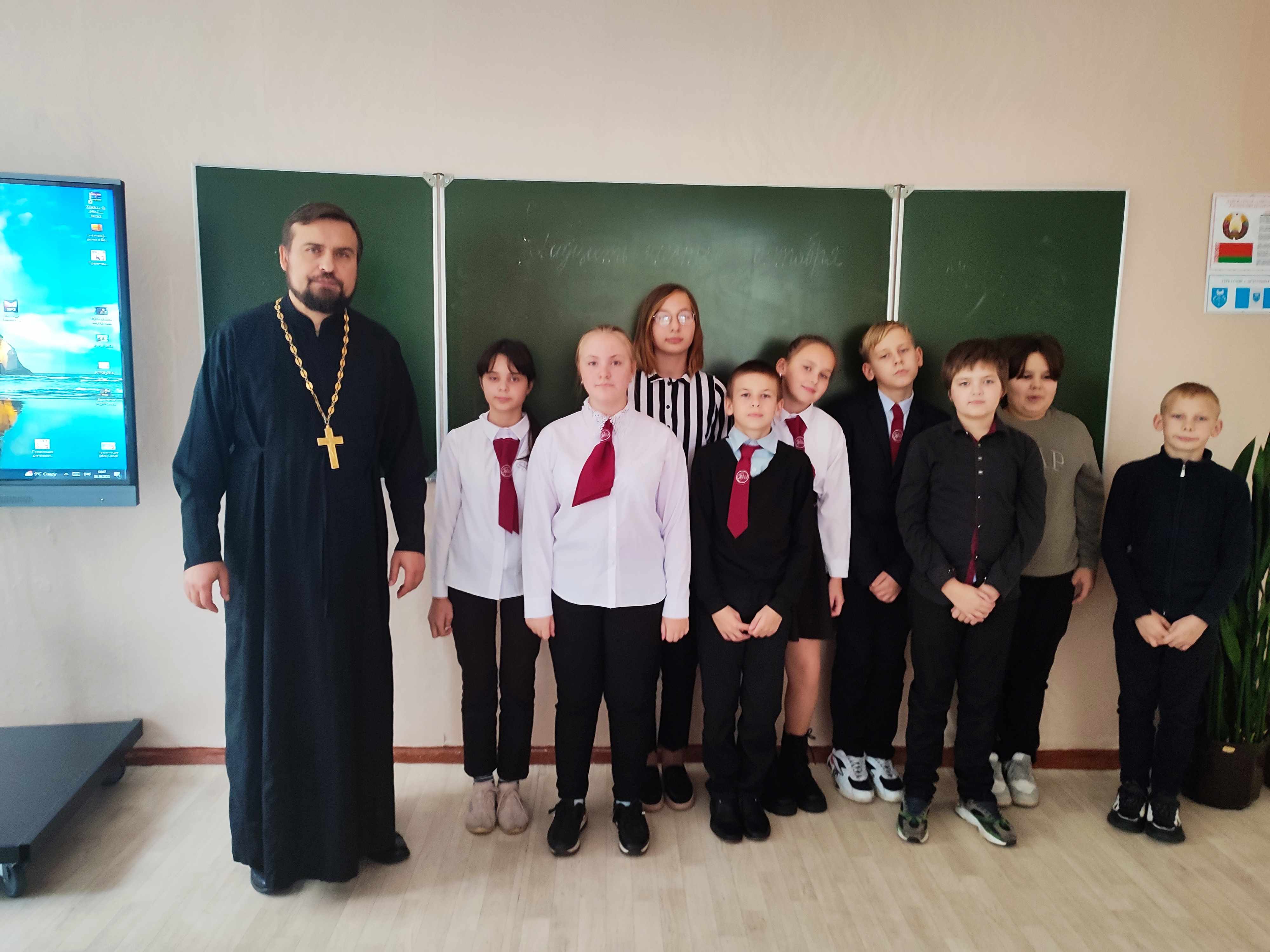 26 октября 2023 года клирик храма в честь святого великомученика Георгия Победоносца в дер. Воловель протоиерей Георгий Белоусов провёл встречу с учениками 6-7 классов ГУО «Воловельская средняя школа». Тема встречи: «Рождество Пресвятой Богородицы. Введение во храм