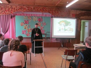 24 февраля 2017 года кинолекторий «О здравии душевном и телесном» прошел в Воловельской СШ. Настоятель Георгиевского храма дер. Воловель иерей Сергий Немшон рассказал учащимся о бессмертной человеческой душе, которую Господь дает каждому. Первые люди в Раю Адам и Ева были безгрешны и поэтому жили долго. Адам прожил 930 лет. Недоверие Богу, нарушение заповедей привело всех людей ко греху. Грехи Адама и Евы легли на все человечество. И теперь за совершенные ошибки, плохие поступки в жизни каждый несет ответ пред Господом. Душа человеческая бессмертна, а жизнь на земле — это труд каждого человека для будущей жизни с Господом, поэтому главное правило жизни на земле — никому не навреди, живи по заповедям Божьим, старайся проявлять добрые отношения с любовью и терпением, не ставь в своей жизни главную цель быть богатым и успешным, а главное будь добрым человеком, живи по Божьему, потому что счастье — это состояние души. Если в душе вашей будет царить любовь, смирение, терпение и благодарность за все Богу, то вы будете здоровыми и радостными.