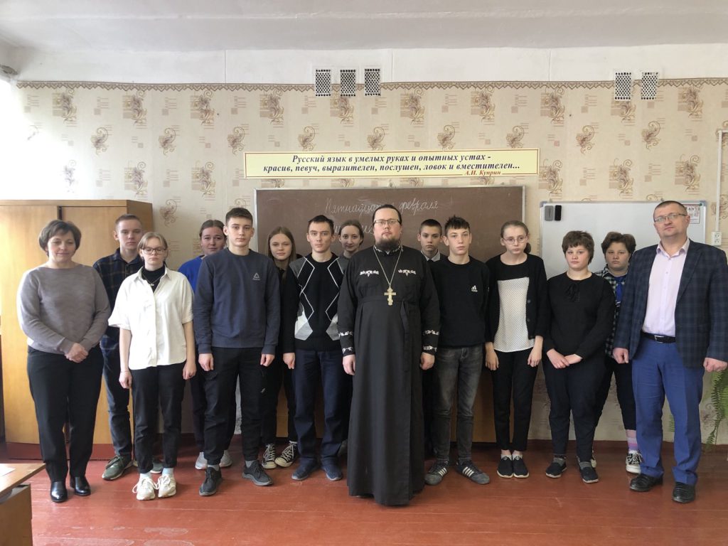 15 февраля 2023 года настоятель храма Рождества Пресвятой Богородицы в дер. Ляховичи иерей Сергий Богуш провел встречу с учениками 9-11 классов ГУО «Заречковская средняя школа».