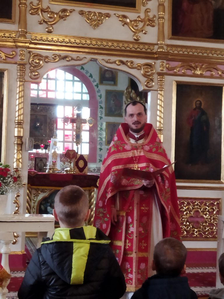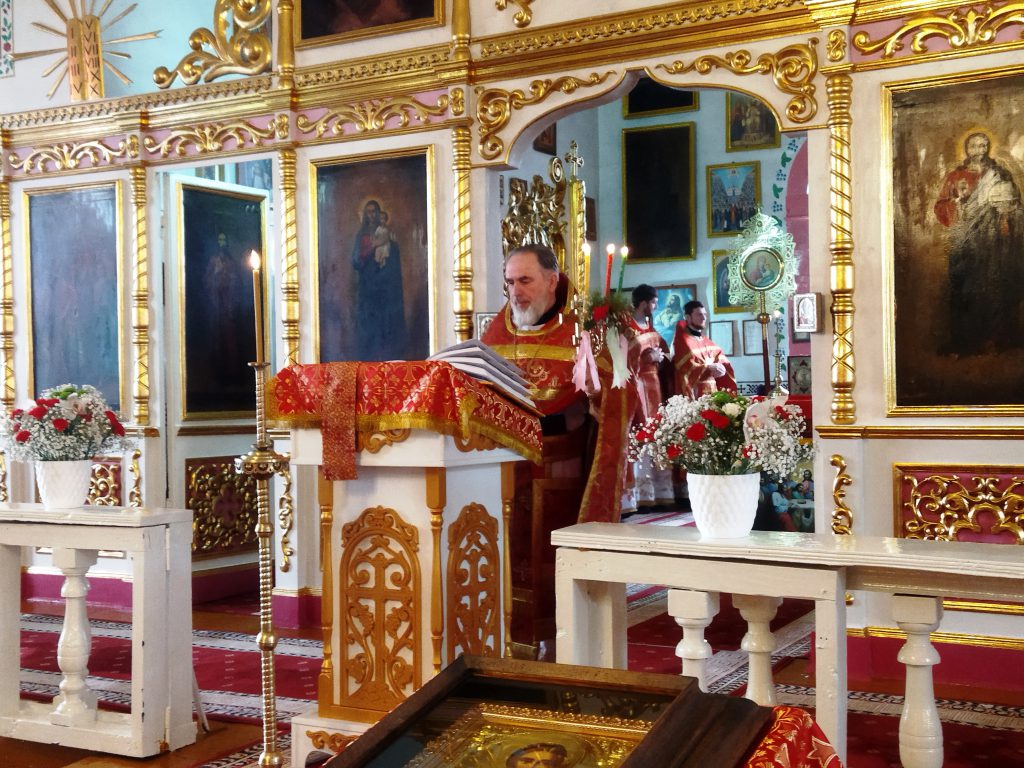 После окончания Литургии был совершен Крестный ход вокруг храма. Во время проповеди отец благочинный