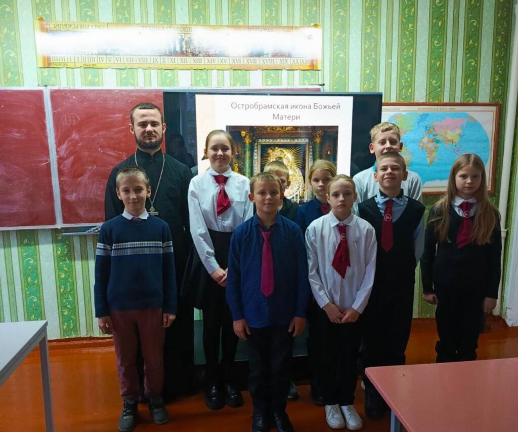 21 ноября 2024 года в Воловельской СШ прошла встреча настоятеля храма святого великомученика Георгия Победоносца в д. Воловель иерея Сергия Остаповича с учениками 6-7 классов. Иерей Сергий рассказал слушателям о празднике Архистратига Михаила и иконы Божией Матери «Скоропослушница».