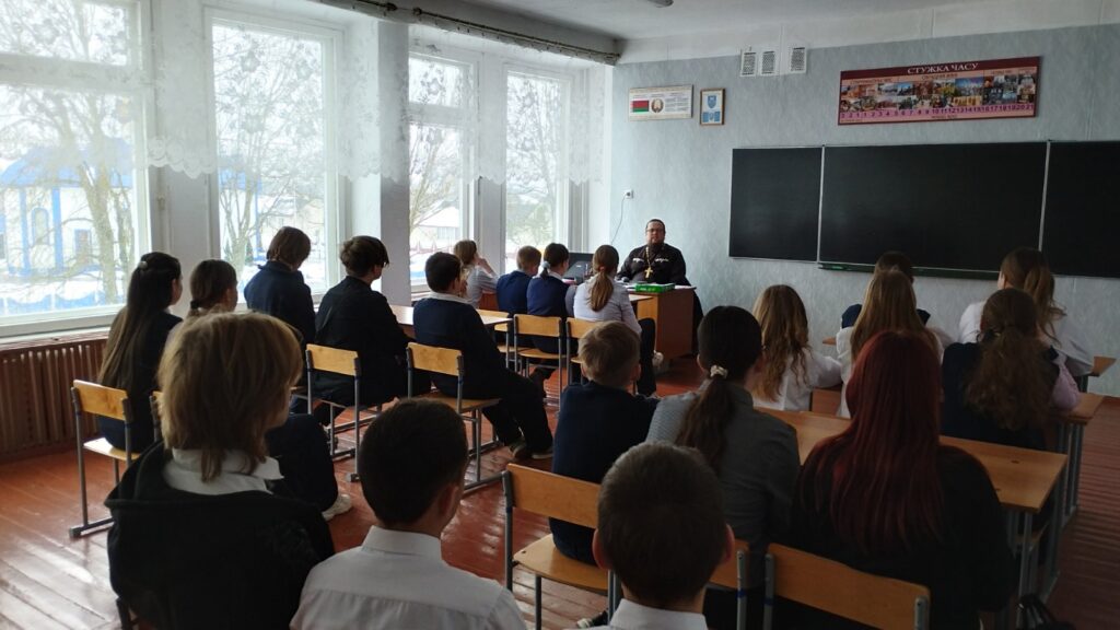 16 февраля 2026 года в Заречковской средней школе состоялась встреча учащихся с настоятелем храма Рождества Пресвятой Богородицы в д. Ляховичи священником Сергием Богушем.
