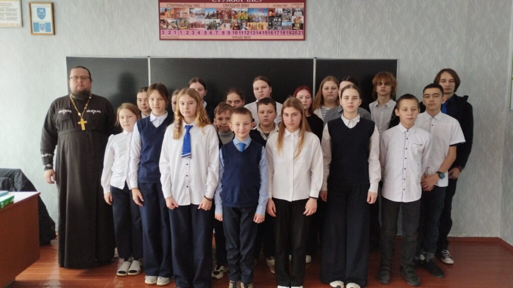 16 февраля 2026 года в Заречковской средней школе состоялась встреча учащихся с настоятелем храма Рождества Пресвятой Богородицы в д. Ляховичи священником Сергием Богушем.