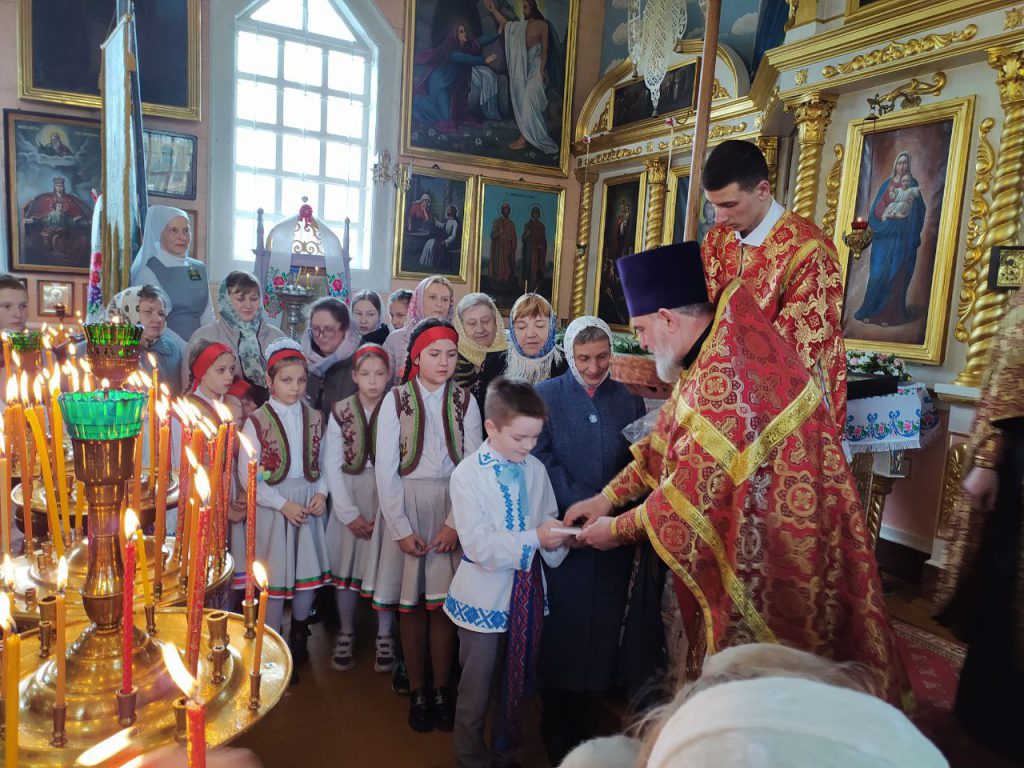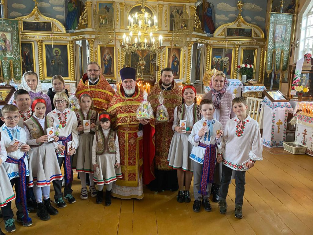 После детского выступления к собравшимся обратился настоятель храма протоиерей Иоанн Пинчук и поблагодарил за теплое и искреннее творческое поздравление с праздником Воскресения Христова и вручил им сладкое угощение.