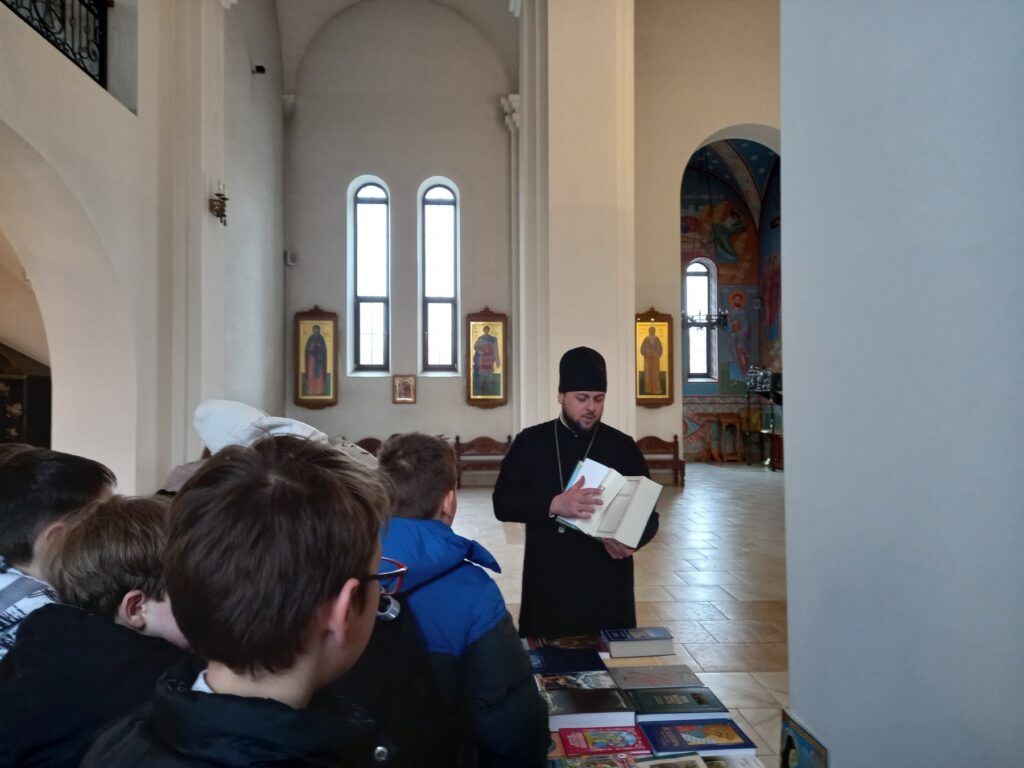 28 февраля 2025 г. в храме прп. Евфросинии Полоцкой в г. Дрогичине прошла встреча учеников 5 класса средней школы №2 г. Дрогичина со священником храма иереем Димитрием Гречко, посвященная Дню Православной книги.