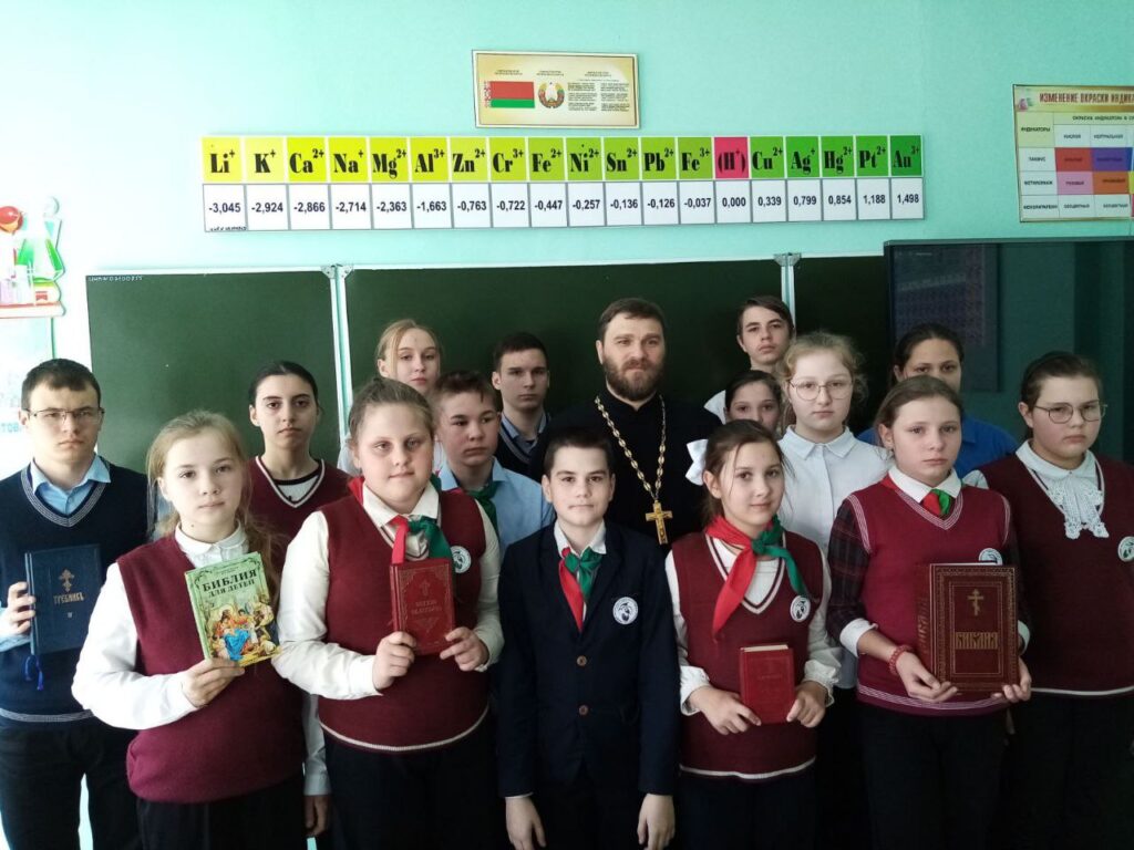 20 марта 2025 года настоятель храма Богоявления в аг. Именин иерей Иоанн Барановский провел во время классного часа беседу с учениками Именинской СШ на тему Дня православной книги, который отмечается 14 марта. Для изучения ребятам была представлена духовная литература: Библия, Псалтирь, Евангелие, Молитвослов.