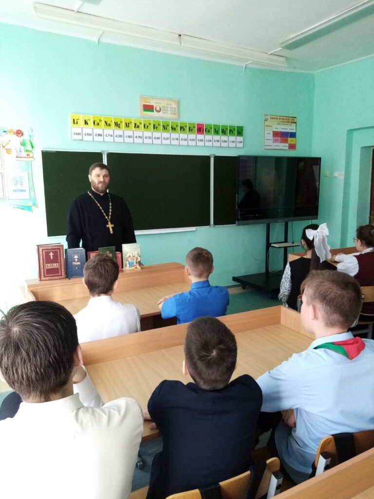 20 марта 2025 года настоятель храма Богоявления в аг. Именин иерей Иоанн Барановский провел во время классного часа беседу с учениками Именинской СШ на тему Дня православной книги, который отмечается 14 марта. Для изучения ребятам была представлена духовная литература: Библия, Псалтирь, Евангелие, Молитвослов.