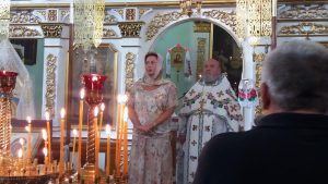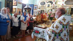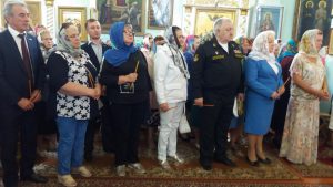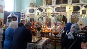 Настоятель храма Святой Живоначальной Троицы протоиерей Геннадий Ворон встретил гостей в храме и совместно с прихожанами помолился об упокоении душ усопших воинов. Рассказал об истории Евангелия, вывезенного из храма в годы Великой Отечественной войны.