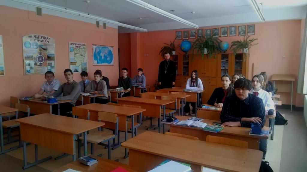 27 января 2026г. в средней школе №1 г. Дрогичина состоялась встреча учащихся 9 «А» класса с клириком храма Сретения Господня в г.Дрогичине иереем Александром Полоско.