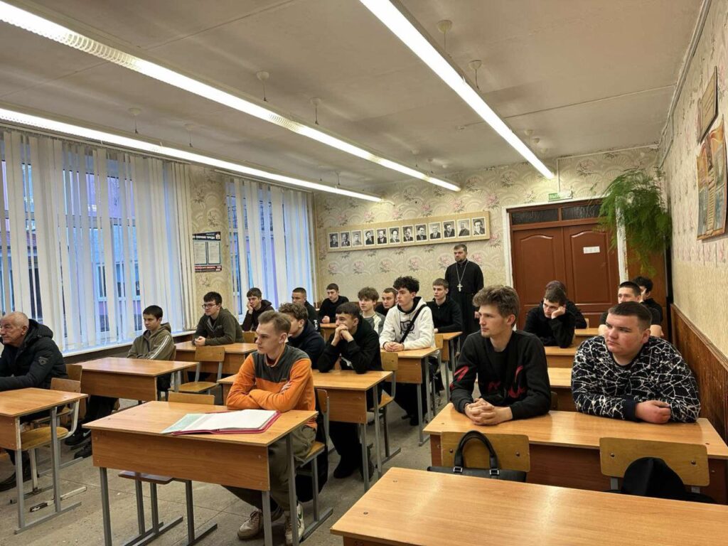 20 февраля 2026 г., в преддверии Дня защитника Отечества, клирик храма Сретения Господня в г. Дрогичине иерей Александр Полоско провел беседу с учащимися Дрогичинского аграрного колледжа на тему «Христианин и воин: два служения – одна цель».