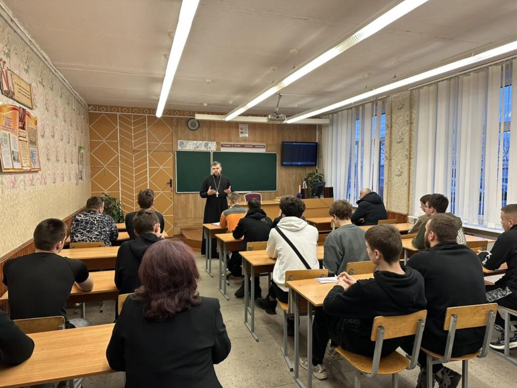 20 февраля 2026 г., в преддверии Дня защитника Отечества, клирик храма Сретения Господня в г. Дрогичине иерей Александр Полоско провел беседу с учащимися Дрогичинского аграрного колледжа на тему «Христианин и воин: два служения – одна цель».