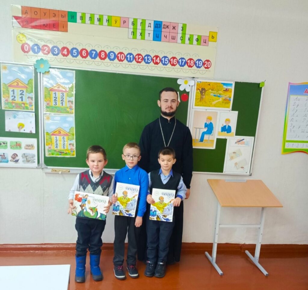 В средней школе дер. Воловель 3 декабря 2024 года состоялось встреча: ученики первого класса встретились с отцом Сергием Остаповичем, настоятелем храма святого великомученика Георгия Победоносца в дер. Воловель.