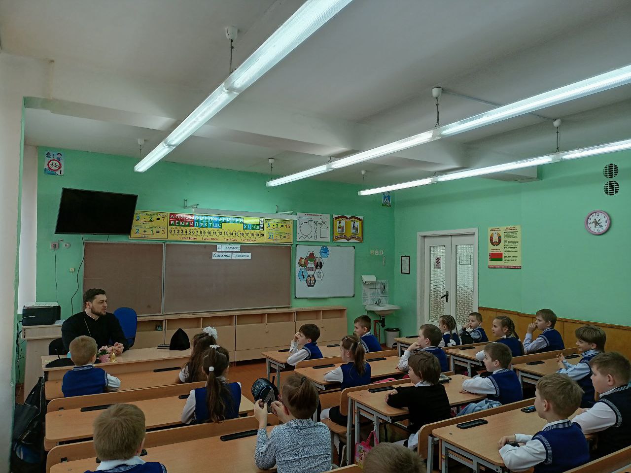 6 апреля 2023 г. в ГУО «Гимназия г. Дрогичина» состоялась встреча учеников 2 класса с клириком храма Сретения Господня в г. Дрогичине священником Димитрием Гречко.