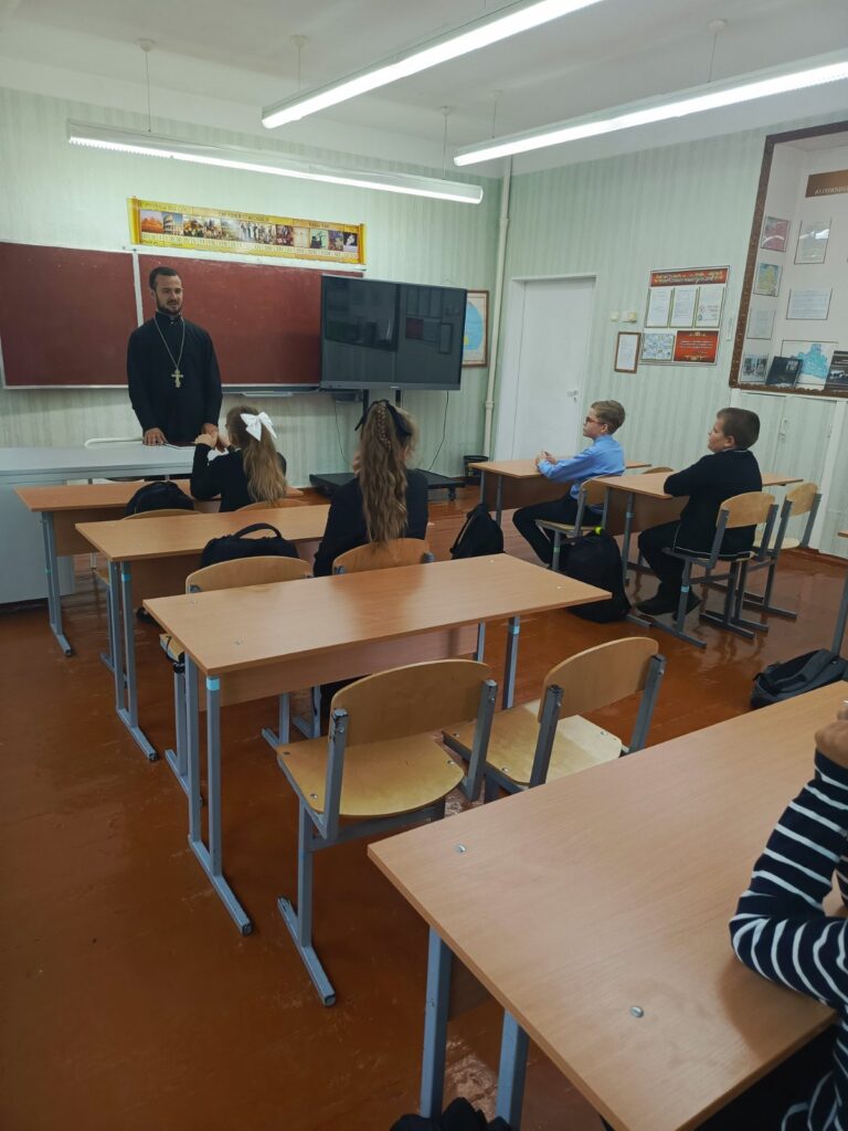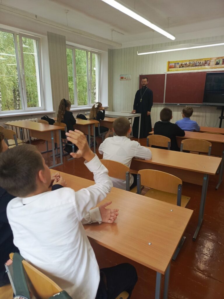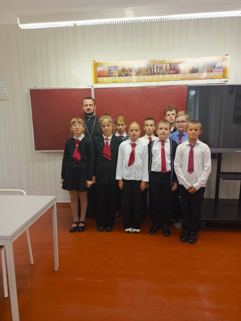 11 сентября 2025 года, в праздник Усекновения главы Пророка, Предтечи и Крестителя Господня Иоанна, настоятель храма святого великомученика Георгия Победоносца в дер. Воловель иерей Сергий Остапович посетил Воловельскую среднюю школу и встретился с учениками 5-6 классов.