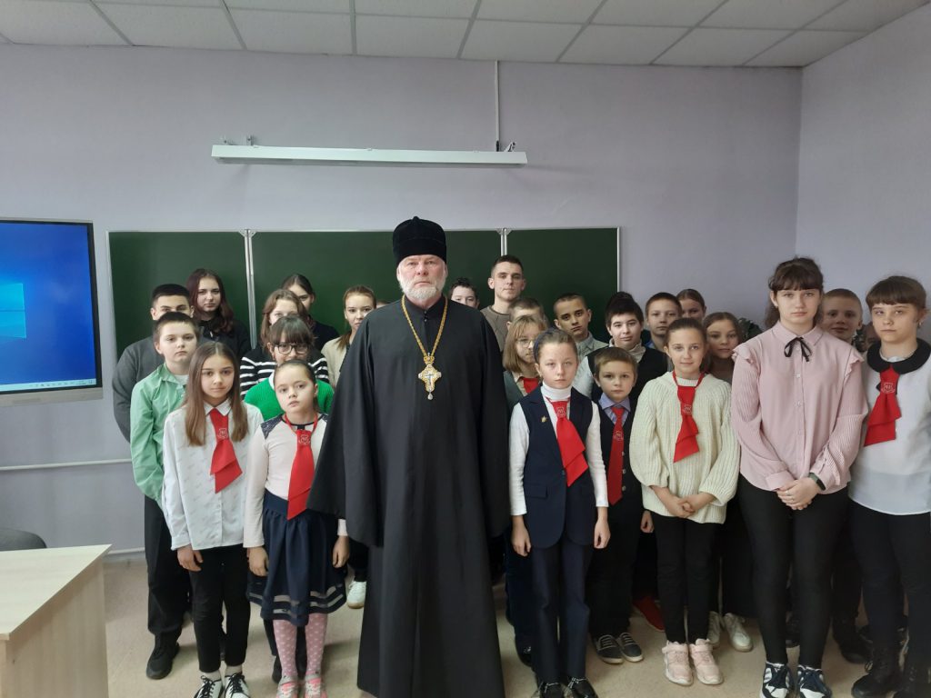В преддверии Великого поста отец Николай рассказал присутствующим педагогам и ученикам о значении праздников в жизни православных христиан и о смысле празднуемых событий для всего человечества. На конкретных примерах протоиерей Николай пояснил, насколько важна вера в жизни человека и что поступки не должны идти вразрез с заповедями Божьими.