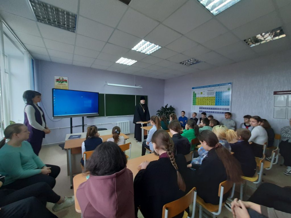 В преддверии Великого поста отец Николай рассказал присутствующим педагогам и ученикам о значении праздников в жизни православных христиан и о смысле празднуемых событий для всего человечества. На конкретных примерах протоиерей Николай пояснил, насколько важна вера в жизни человека и что поступки не должны идти вразрез с заповедями Божьими.