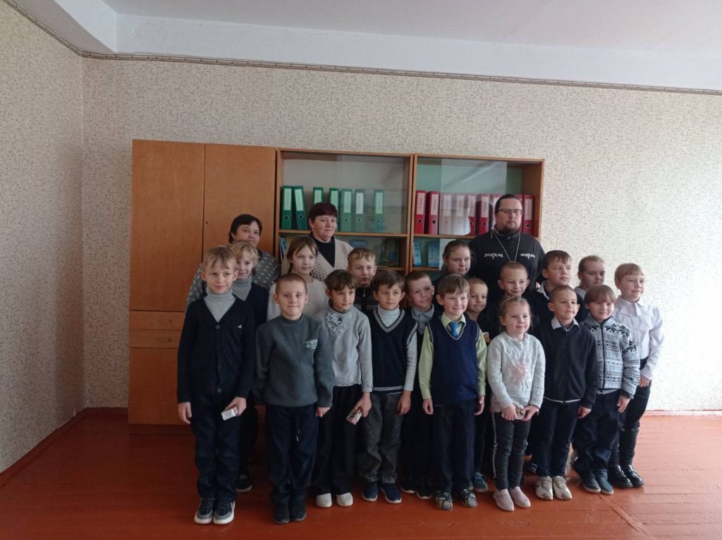 21 ноября 2023 г. в Заречковской общеобразовательной школе состоялась встреча настоятеля прихода храма Рождества Пресвятой Богородицы в д. Ляховичи иерея Сергия Богуша с учащимся 1-4 классов.