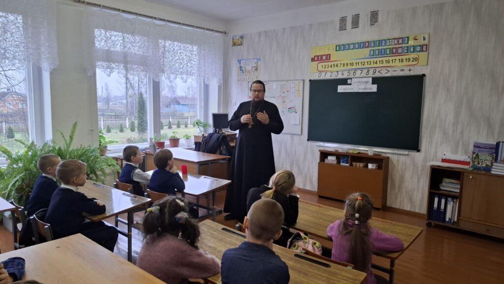29 ноября 2024 г. в Заречковской средней школе состоялась встреча настоятеля прихода храма Рождества Пресвятой Богородицы в д. Ляховичи иерея Сергия Богуша с учащимся 1-4 классов.