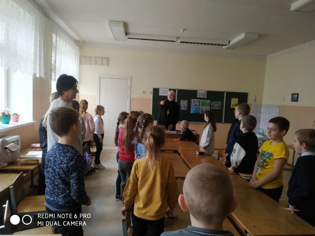 29 марта 2024 г. протоиерей Василий Михновец, настоятель храма Преображения Господня в аг. Новая Попина, встретился с учащимися оздоровительного лагеря «Спадчына» Новопопинской средней школы. Темой для разговора стала православная книга.