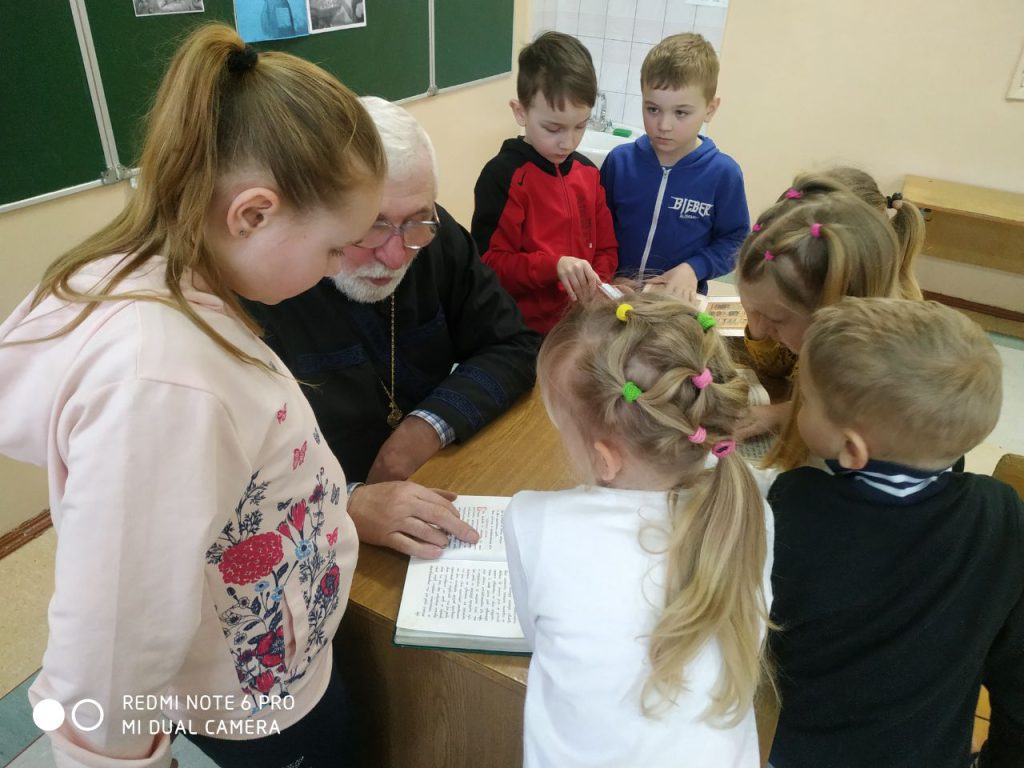 29 марта 2024 г. протоиерей Василий Михновец, настоятель храма Преображения Господня в аг. Новая Попина, встретился с учащимися оздоровительного лагеря «Спадчына» Новопопинской средней школы. Темой для разговора стала православная книга.
