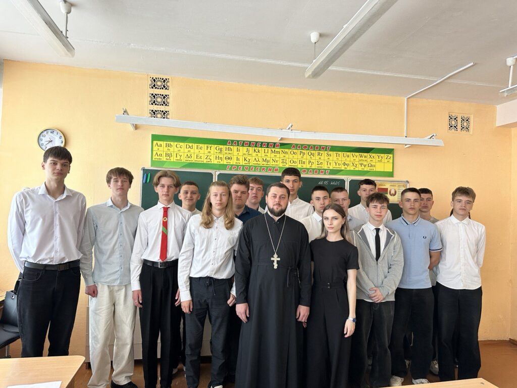 Священнослужитель рассказал выпускникам о важности оставаться христианами всегда, во всех обстоятельствах жизни. На примерах пояснил, почему нужно с юности заботиться о душе и Спасении. Подводя итоги разговора, вместе сделали выводы: что всё нам можно, но не все нам полезно, как учит святой апостол Павел; что грех никогда не ведет человека к счастью; что приближающаяся смерть не меняет человека, но раскрывают то содержание, которым человек наполнял свою душу в течение жизни.