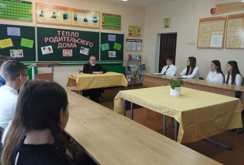 Завершением Недели родительской любви в ГУО «Средняя школа № 2 г. Дрогичина» стала встреча учащихся 10-11 классов с благочинным Дрогичинского округа, настоятелем храма в честь Преподобной Евфросинии Полоцкой протоиереем Иоанном Пинчуком.
