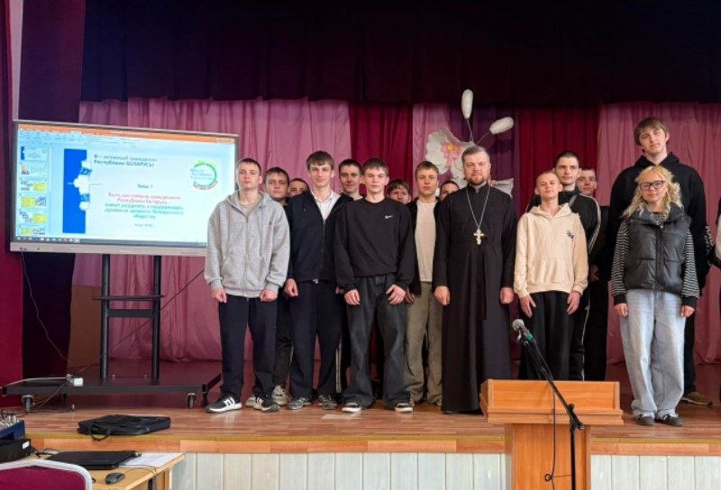 31 марта 2026г. в рамках республиканского проекта «Школа Активного Гражданина» в Дрогичинском аграрном колледже состоялся единый урок «Быть достойным гражданином Республики Беларусь – значит разделять и поддерживать духовные ценности белорусского общества». Гостем мероприятия стал клирик храма Сретения Господня в г. Дрогичине священник Александр Полоско.
