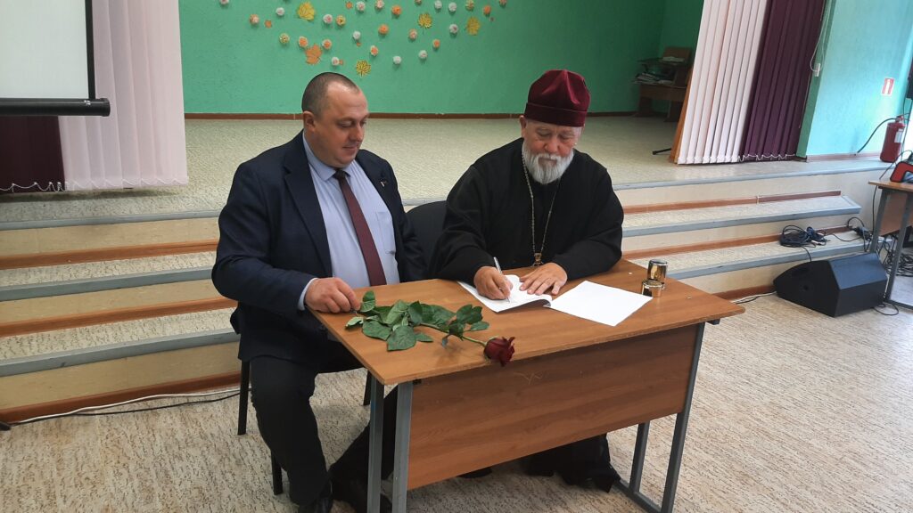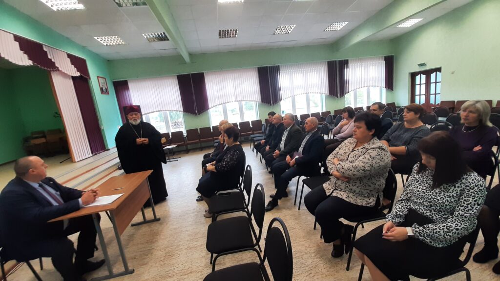 6 октября настоятель храма Святой Живоначальной Троицы аг. Бездеж протоиерей Геннадий Ворон встретился с педагогами ГУО «Бездежская средняя школа». Вначале встречи совместно с директором школы Базакой П. В. был согласован и подписан план сотрудничества школы и прихода. Далее отец Геннадий кратко познакомил с богатой историей православных храмов, которые были и действуют на территории агрогородка, призвал учителей личным примером воспитывать у ребят поведение православных христиан.