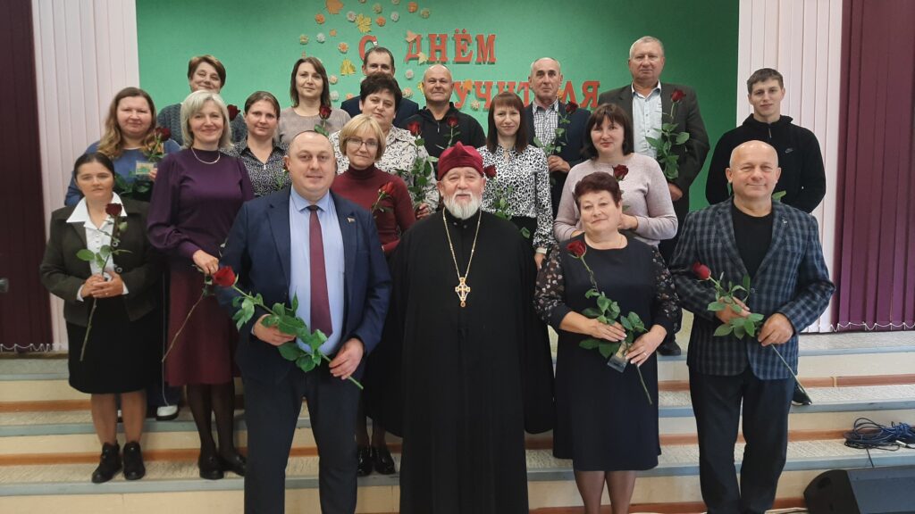 В конце встречи батюшка поздравил руководство школы и всех педагогов с днем учителя, вручил розы, пожелал мудрости и терпения в их трудах.