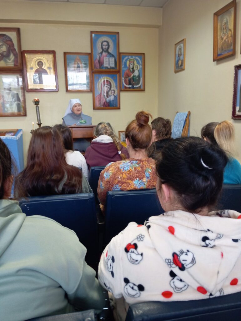 В продолжение темы сестра милосердия Людмила Шевчук отметила, что Библия говорит нам о том, какими должны быть отношения мужа и жены, чтобы брак был счастливым, что у каждого из супругов есть своя роль. Но мы должны понимать, что отношения наши, семейные отношения могут быть разрушены определёнными грехами. Один из грехов, который ударяет по семье даже на будущее поколение — это аборт. Привела статистические данные, касающиеся этой проблемы по Дрогичинскому району за 2024 год, назвала процент разводов и озвучила причины, по которым белорусы расторгают браки, подкрепляя свой рассказ цифрами. В конце встречи были даны ответы на личные вопросы присутствующих женщин, касающиеся крещения детей и выбора имён новорождённым.