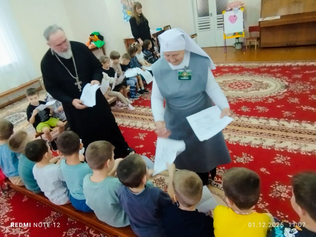 В рамках взаимодействия государственного учреждения образования «Детский сад №1 г. Дрогичина» с приходом храма преподобной Евфросинии Полоцкой в г. Дрогичине, 1 декабря 2025 года прошла встреча настоятеля прихода храма прот. Иоанна Пинчука и сестры сестричества милосердия, действующего при храме, Людмилы Шевчук с воспитанниками старших групп данного учреждения. В ходе встречи с детьми обсуждались такие понятия как доброта и милосердие, забота и внимание, кто такой друг и что такое дружба; какие поступки можно назвать добрыми, а какие злыми. Все эти понятия ребята закрепляли в ходе игры «Хорошо-плохо», «Собери доброе сердце.» Чтобы закрепить сказанное, детям был показан мультипликационный фильм.