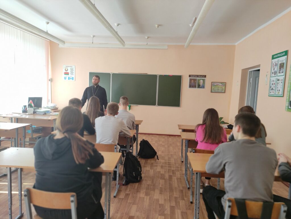 4 апреля 2025 года, настоятель храма Покрова Пресвятой Богородицы в агрогородке Радостово иерей Леонид Коледа встретился с учащимися 11 класса ГУО «Радостовская средняя школа».